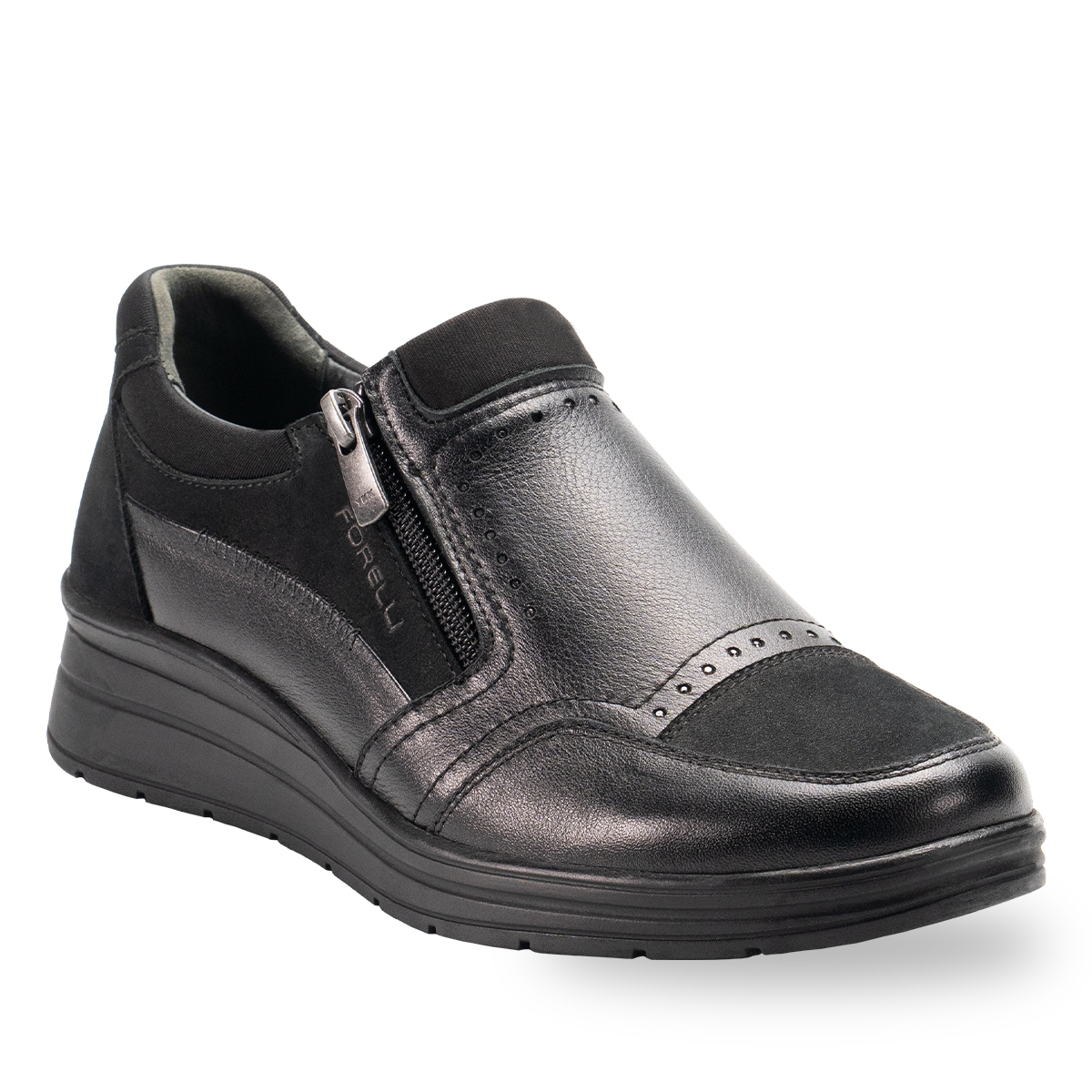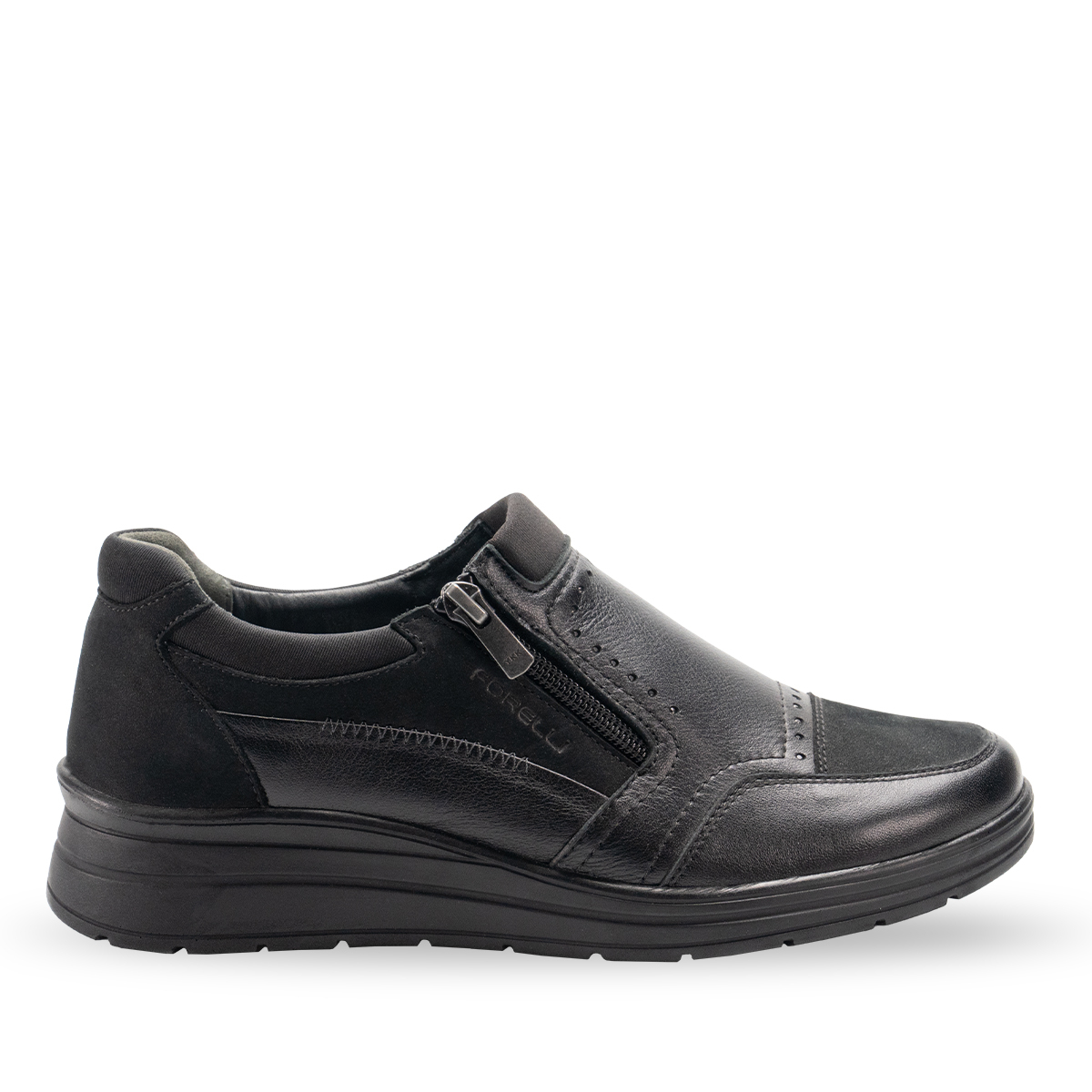 Çıkartılabilir deri kaplı latex fuspet iç tabanı, her adımda destek ve yumuşaklık sunar. Poliüretan tabanı hafif ve dayanıklı olup, 4 cm dolgu topuk ile dengeli ve rahat bir duruş sağlar.