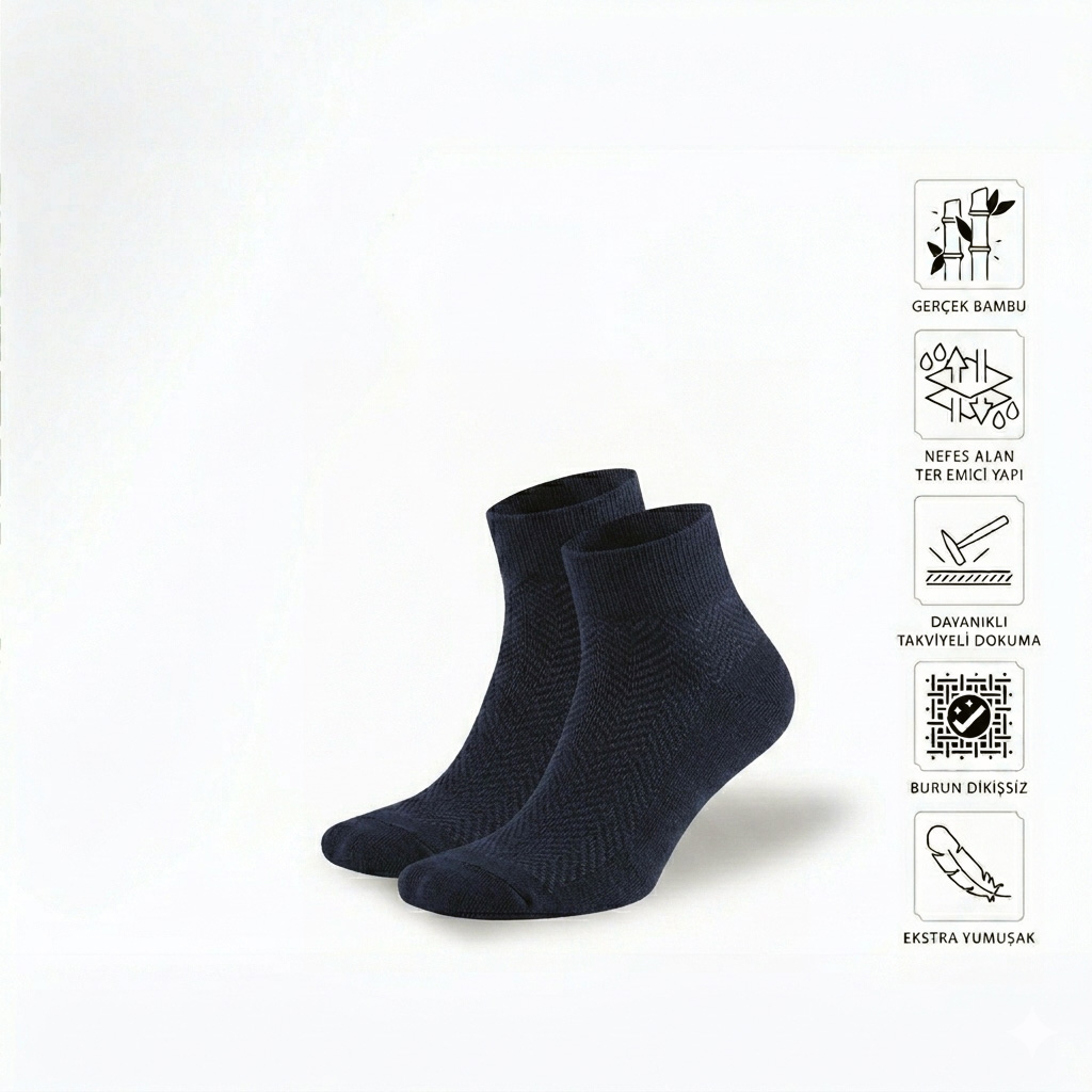 Doğal bambu liflerinin sunduğu ferahlıkla yaz aylarını daha konforlu hale getiren bambu yarım konç erkek çorap modelini keşfedin.