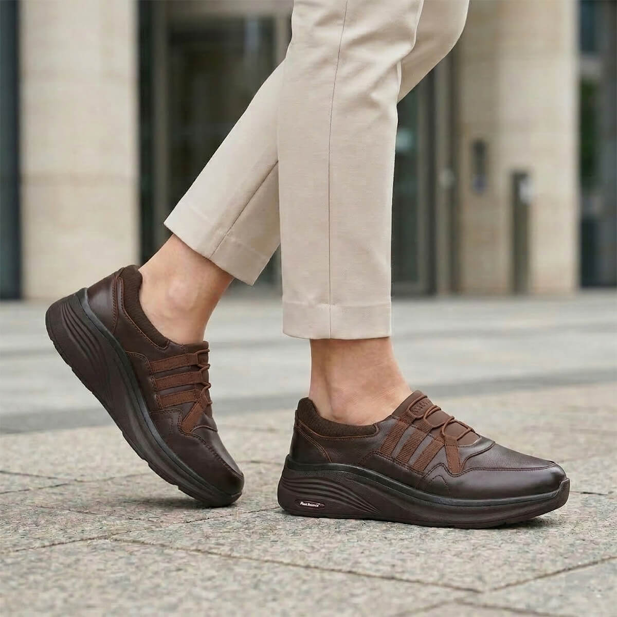 Çıkarılabilir deri kaplı poliüretan fuspet iç tabanı, ayağın anatomik yapısına uyum sağlayarak dengeli ve konforlu bir basış deneyimi oluşturur. Poliüretan taban yapısı hafiflik sunarken güçlü zemin tutuşu ile güvenli adımlar atmanıza yardımcı olur.