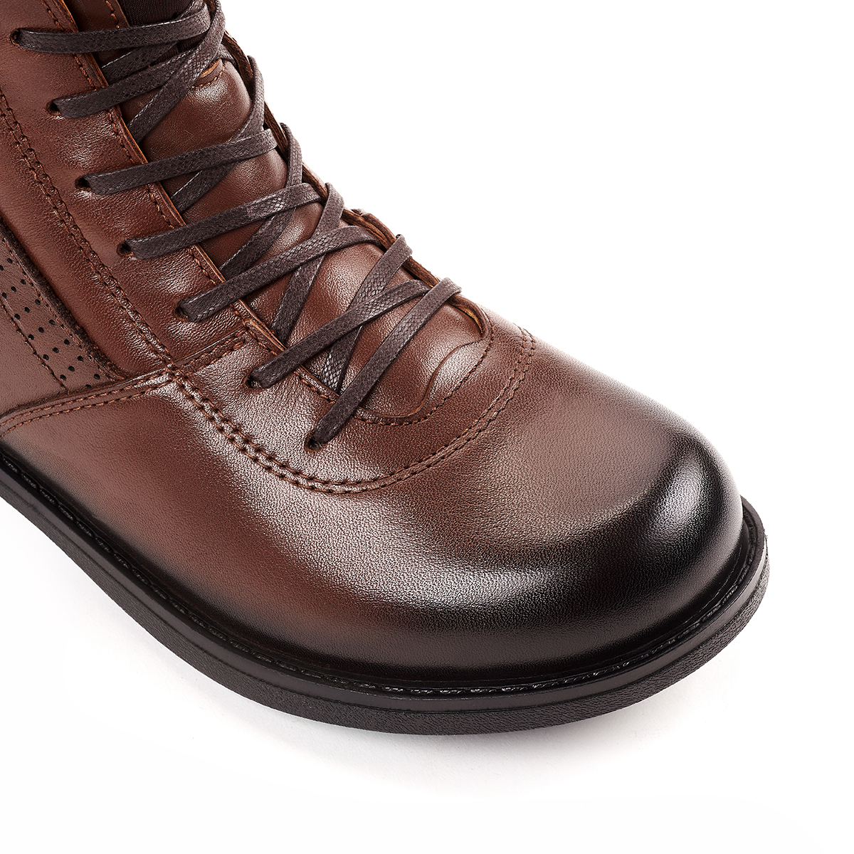 3 cm hafif yüksek düz topuk, günlük kullanımda şıklık ve rahatlığı dengeler. Bağcıklı ve fermuarlı tasarım, ayağa tam uyum ve kolay giyip çıkarma sağlar.