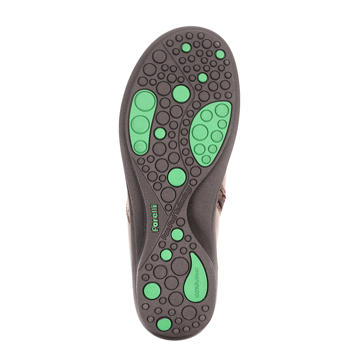 İç tabandaki çıkartılabilir anatomik latex fuspet, ayağı sarar ve gün boyu konfor ve destek sağlar. Kauçuk taban, esnek, hafif ve darbe emici yapısıyla güvenli adımlar sunar.