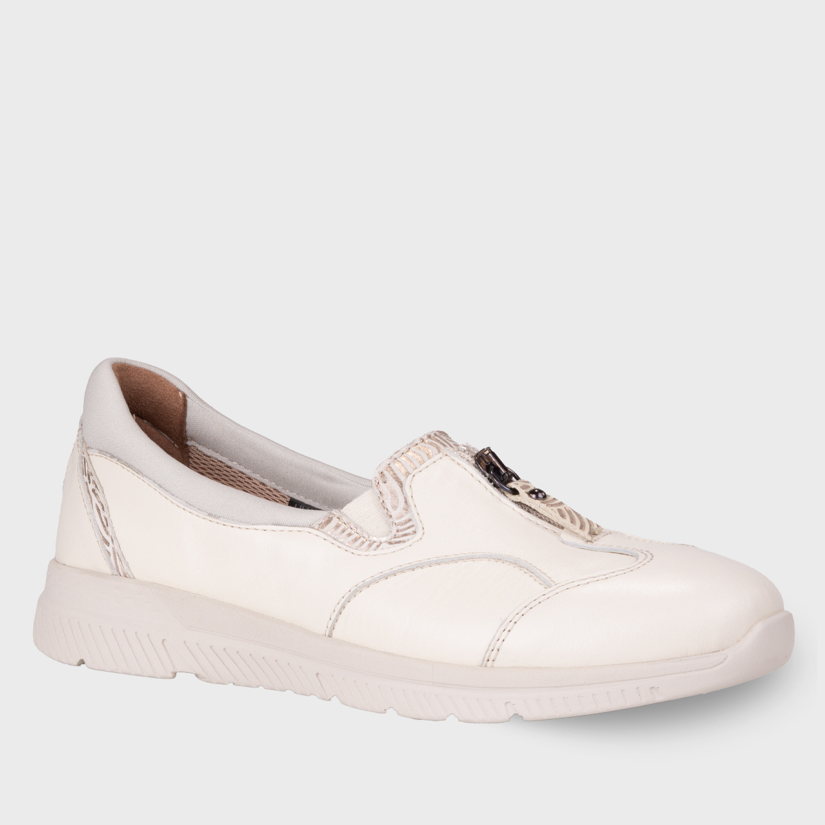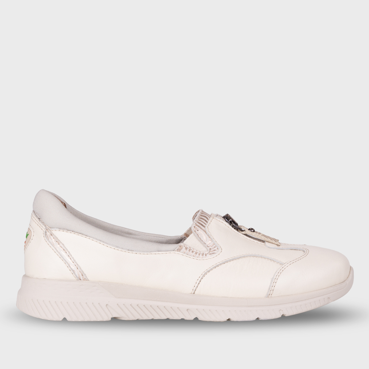 Çıkarılabilir deri kaplı anatomik latex fuspet iç tabanı, özellikle hallux valgus gibi hassasiyetlerde ayağı destekler ve gün boyu konfor sağlar. Poliüretan tabanı dayanıklı ve hafif yapıya sahiptir. 3 cm orta boy düz topuk, günlük kullanımda ideal rahatlık sunar. Bağcıksız tasarımı, kolay giyilip çıkarılabilirliği garanti eder ve standart G kalıp formu ile güvenli bir oturuş sağlar.