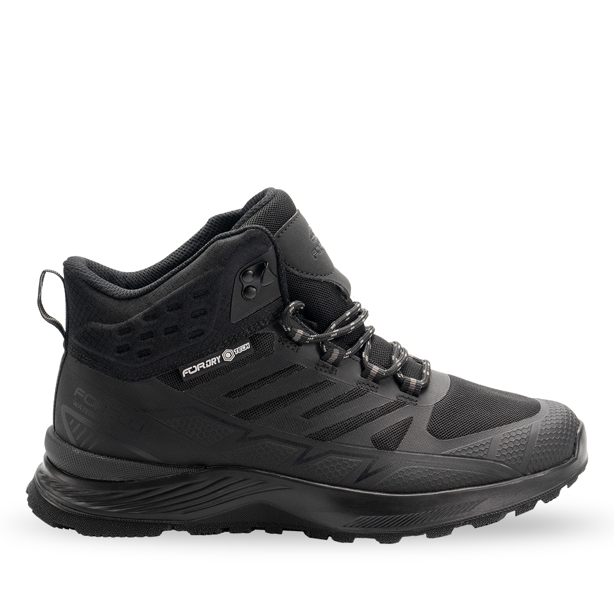TPU katmanlarla desteklenmiş file saya, botun dayanıklılığını artırırken nefes alabilirlik sağlar. FORDRY TECH su geçirmez membran astar, ayağınızı kuru tutarak yağışlı havalarda güvenli kullanım sunar. Çıkartılabilir poliüretan memory fuspet iç taban, ayağı destekler ve uzun süreli konfor sağlar.