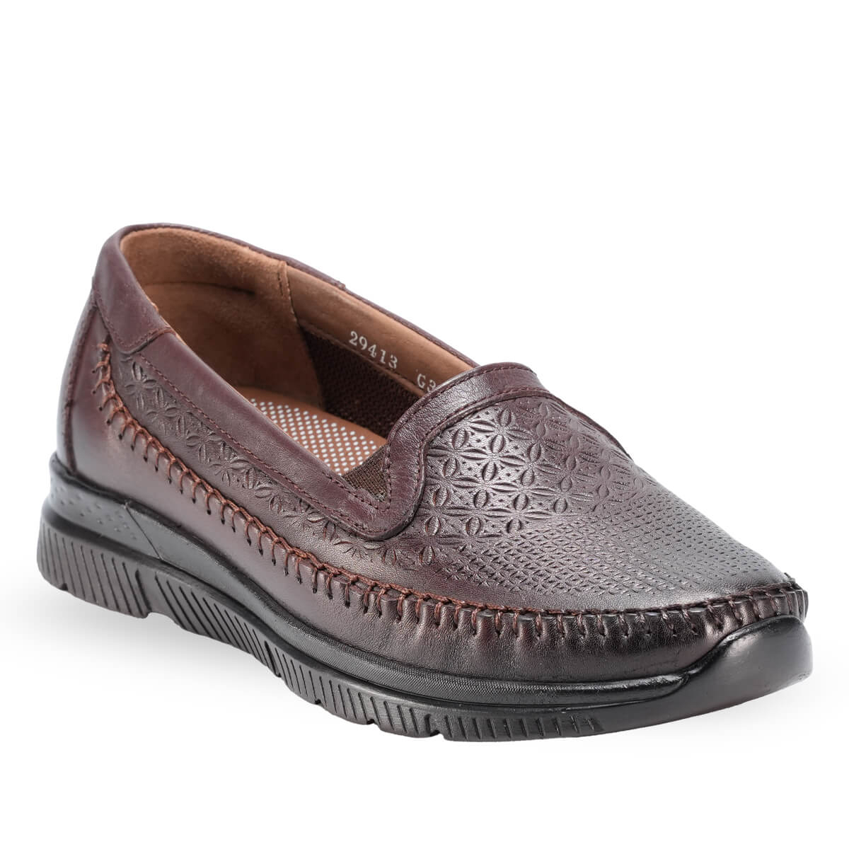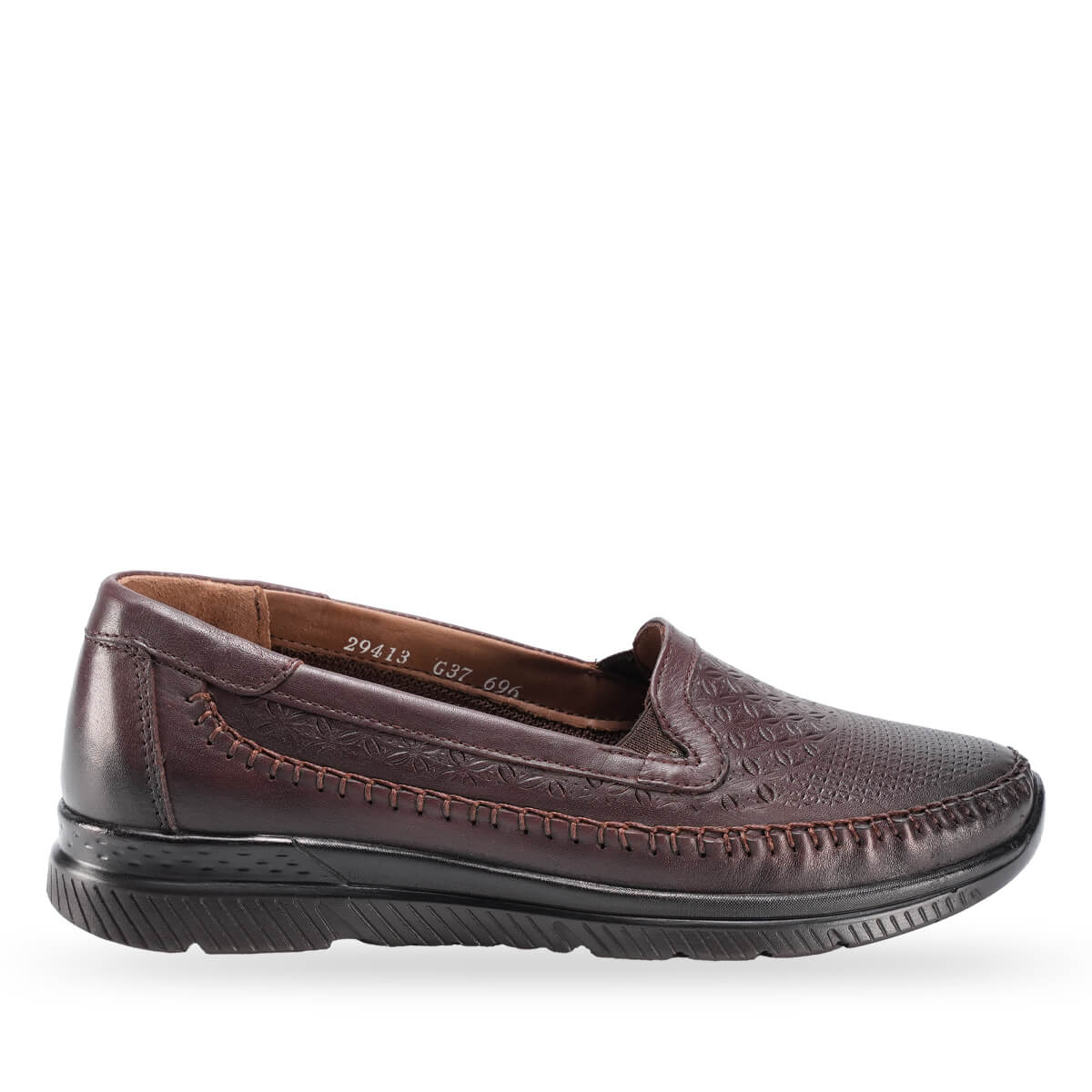 Poliüretan taban ve 3 cm orta boy düz topuk, dengeli bir yürüyüş ve şık bir duruş sağlar. Bağcıksız tasarımı sayesinde hızlı ve pratik kullanım sunarken, kahve rengi klasik kombinlerle uyumlu ve stil sahibi bir görünüm kazandırır.