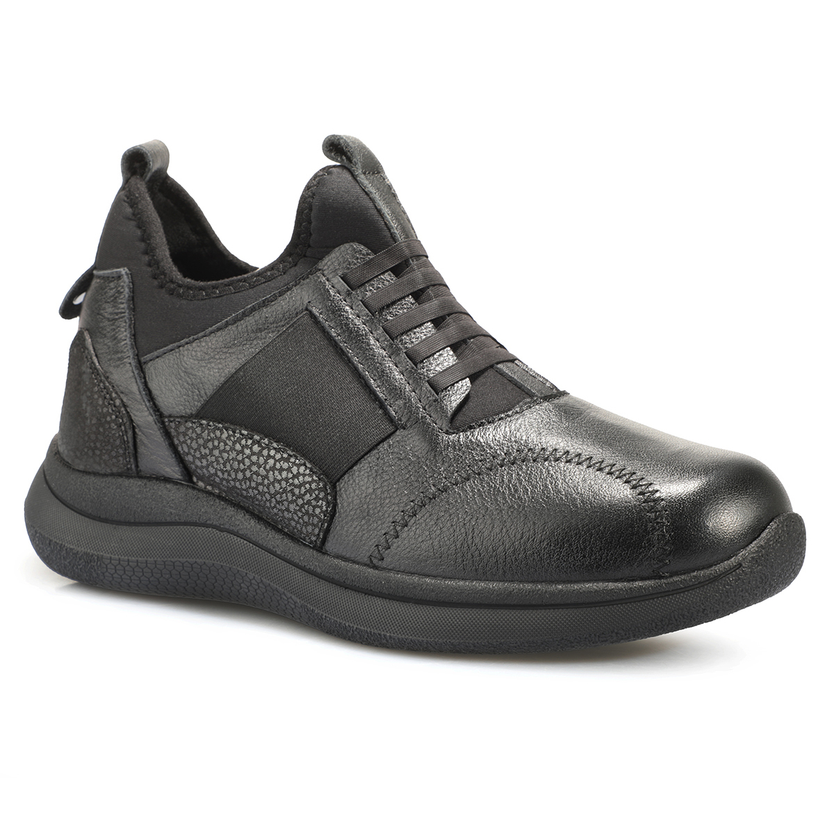 Çıkartılabilir anatomik latex fuspet, ayağın şeklini alarak ekstra destek ve yumuşaklık sunuyor. 4 cm hafif yüksek düz topuk, zarif bir duruş sağlarken yürüyüşte rahatlık sunuyor. Bağcıksız tasarımı, pratik kullanım ve modern bir görünüm sağlıyor.