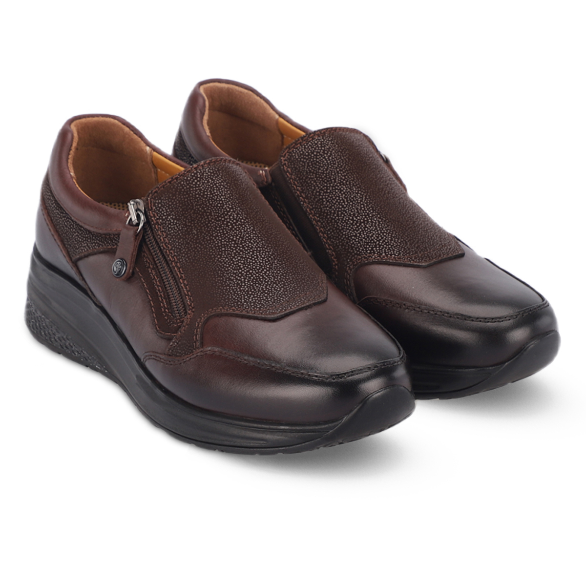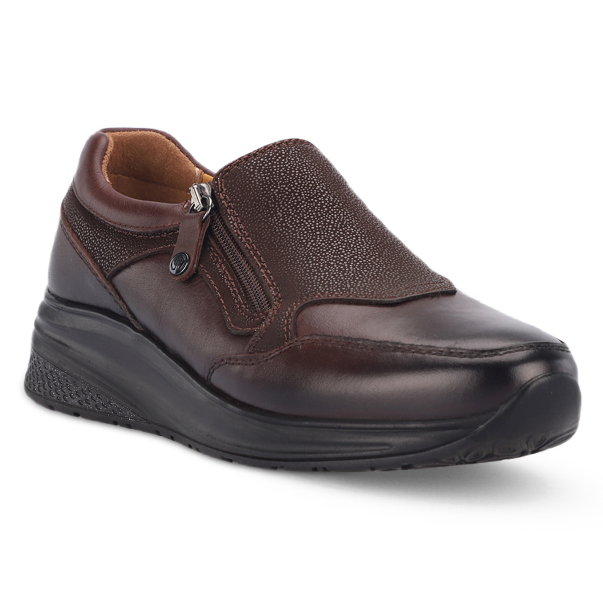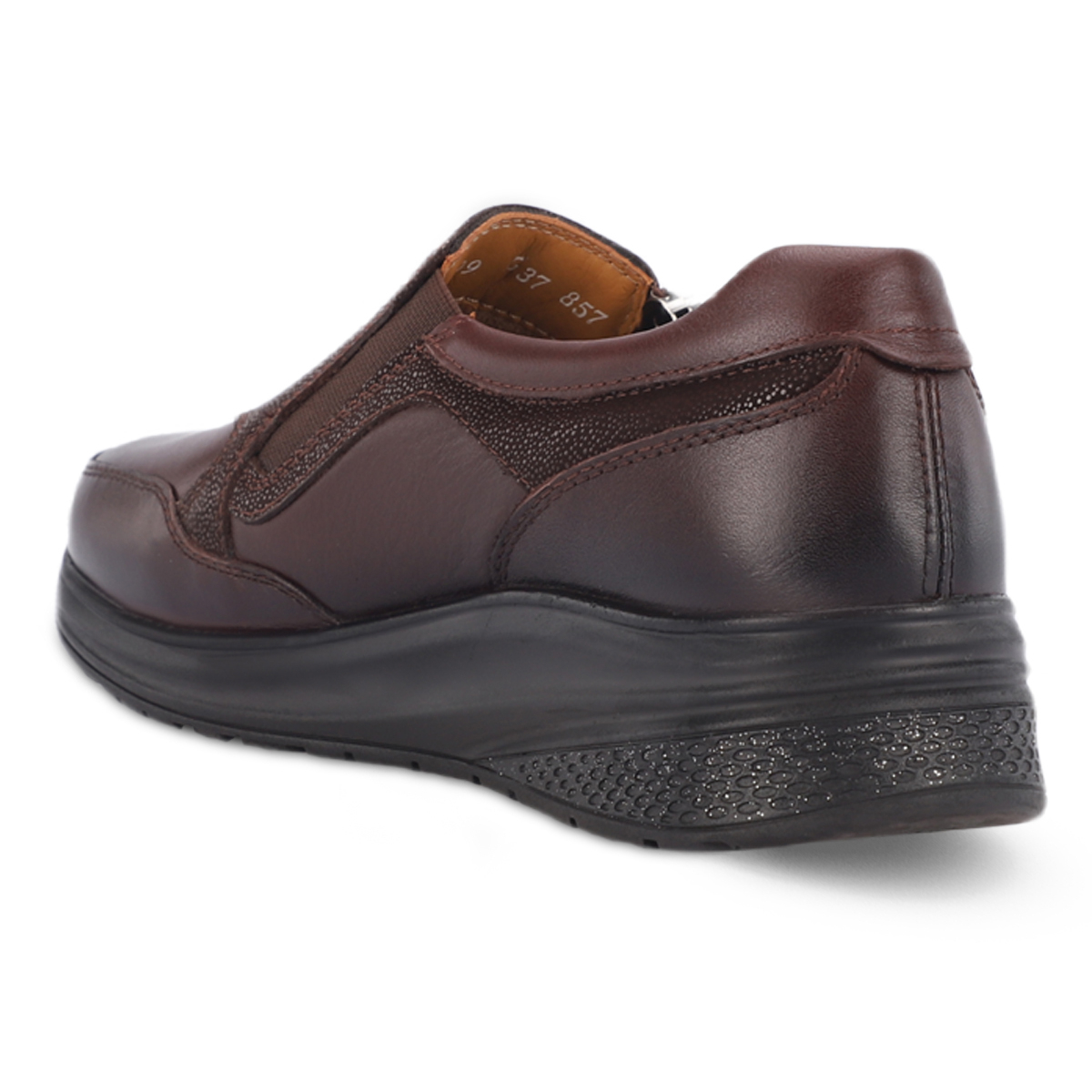 MELDA-G kadın deri ayakkabı, şıklığı ve konforu bir arada sunan özel bir tasarıma sahiptir. %100 doğal deri üst yüzeyi, uzun ömürlü kullanım sağlarken %30 deri ve %70 tekstil astarı gün boyu rahatlık verir. Çıkartılabilir, deri kaplı latex fuspet iç taban yumuşak basma hissi ve destek sunar.