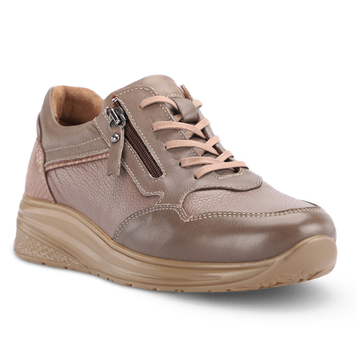 Şıklığı ve rahatlığı bir arada sunan MISHA-G kadın ayakkabı, %100 doğal deri üst yüzeyi ile uzun ömürlü ve nefes alabilir bir kullanım sağlar. %40 deri ve %60 tekstil astarı ile ayağınızın hava almasına yardımcı olurken, çıkartılabilir deri kaplı anatomik latex fuspet iç tabanı gün boyu konfor sunar.