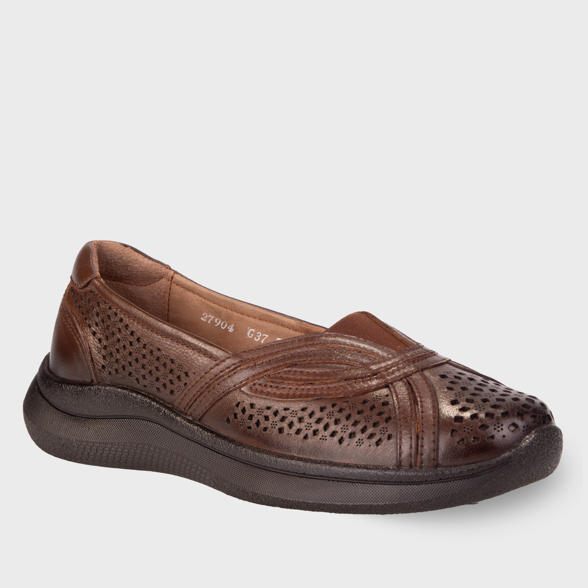 PERGE-G Kadın Deri Ayakkabı, %100 doğal deri üst ve astar malzeme ile şık, dayanıklı ve nefes alabilir bir kullanım sunar. İç tabandaki çıkartılabilir deri kaplı latex fuspet, ayağı sarar ve gün boyu konfor sağlar.