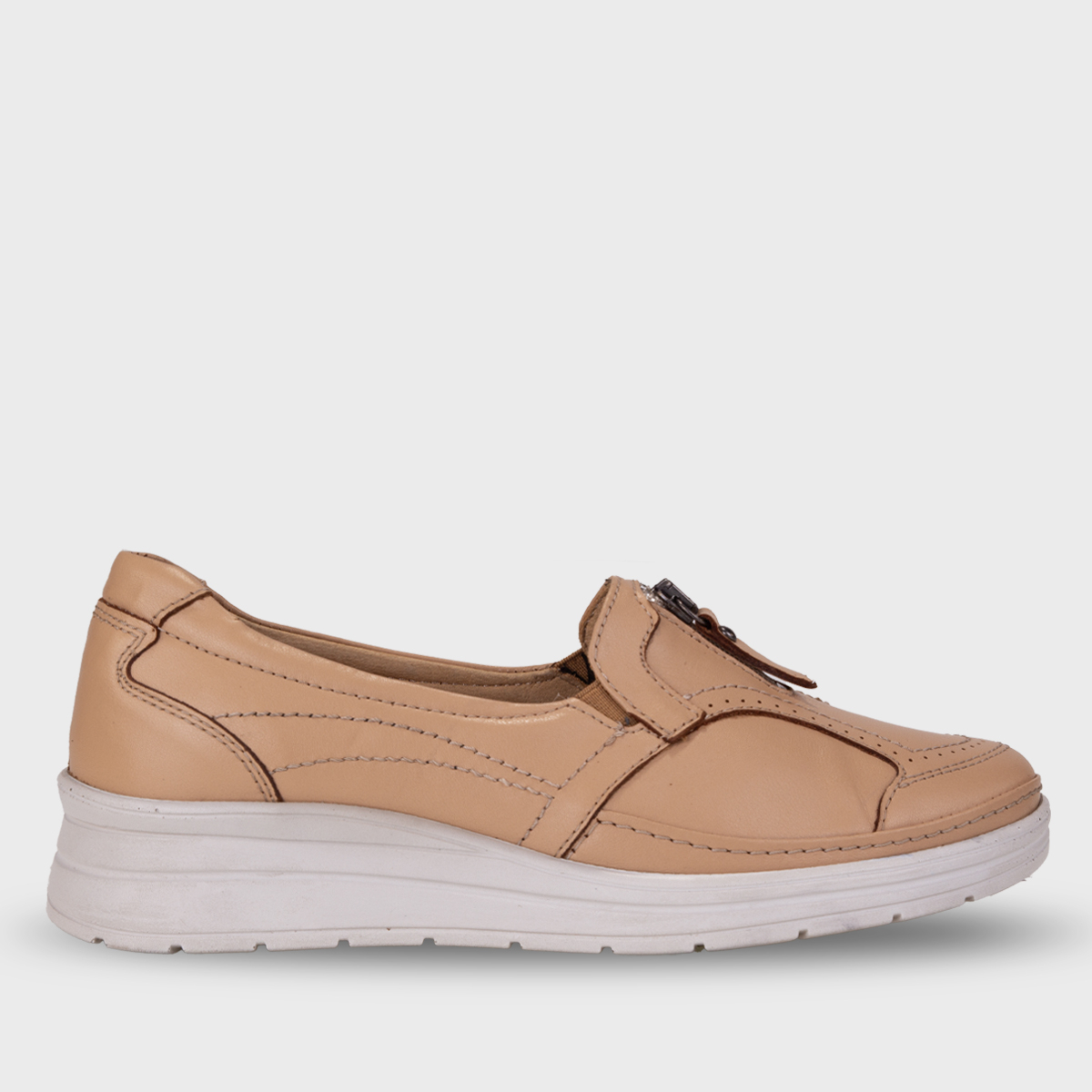 Çıkartılabilir, deri kaplı anatomik latex fuspet iç tabanı, adımlarınızı yumuşatırken ayağınıza destek verir. 4 cm dolgu topuğu, hem zarif bir duruş hem de rahat yürüyüş imkânı sunar.