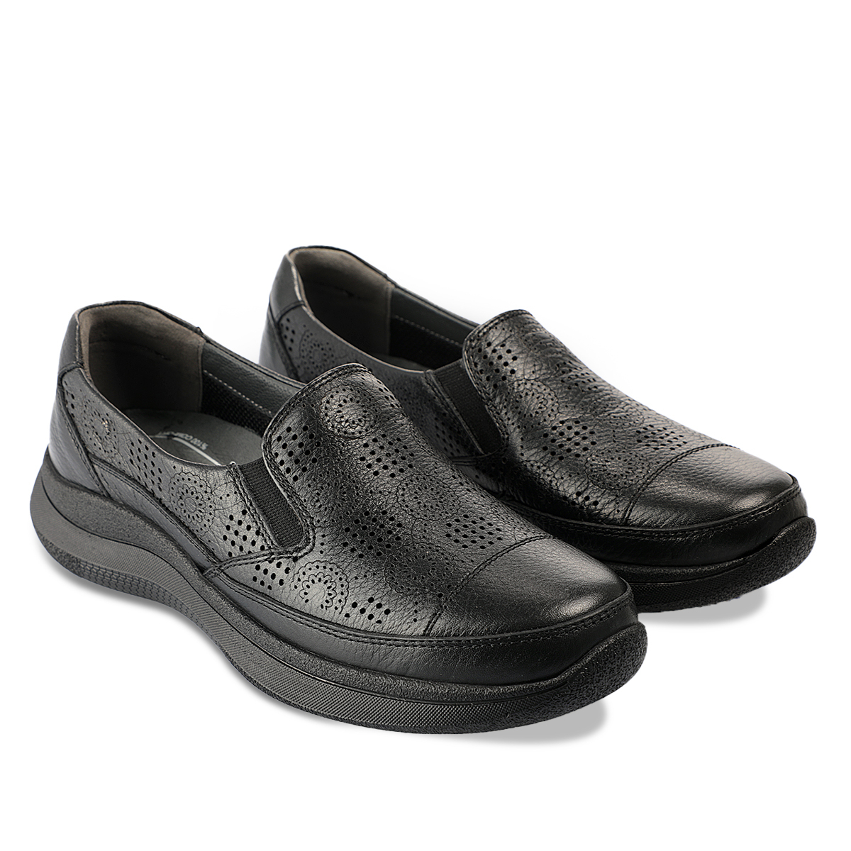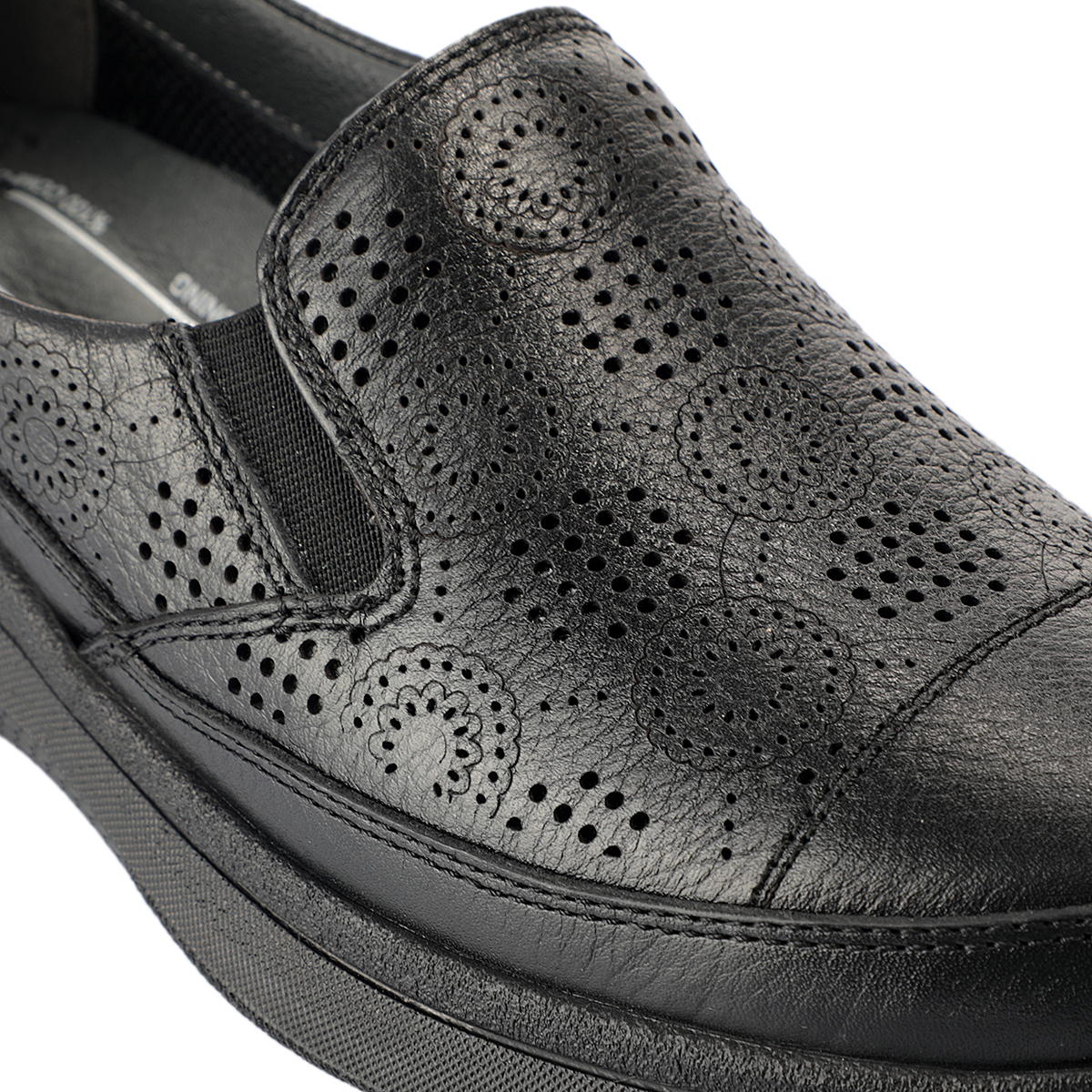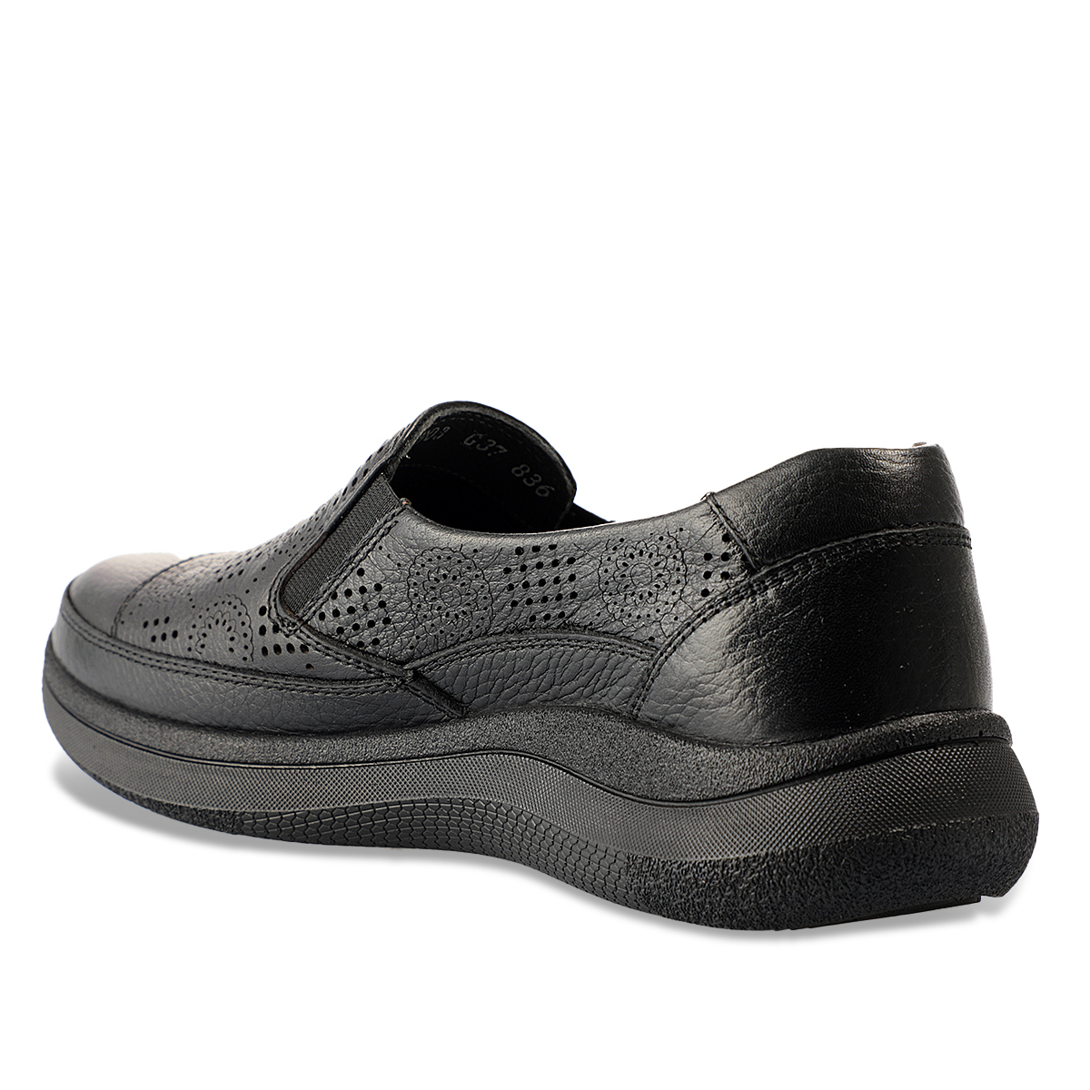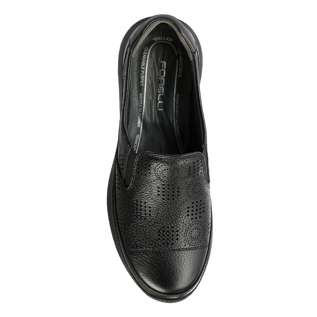 İç tabandaki çıkartılabilir deri kaplı anatomik latex fuspet, ayağı sarar ve gün boyu konfor sağlar. Poliüretan taban, hafif, esnek ve darbe emici yapısıyla güvenli adımlar sunar.