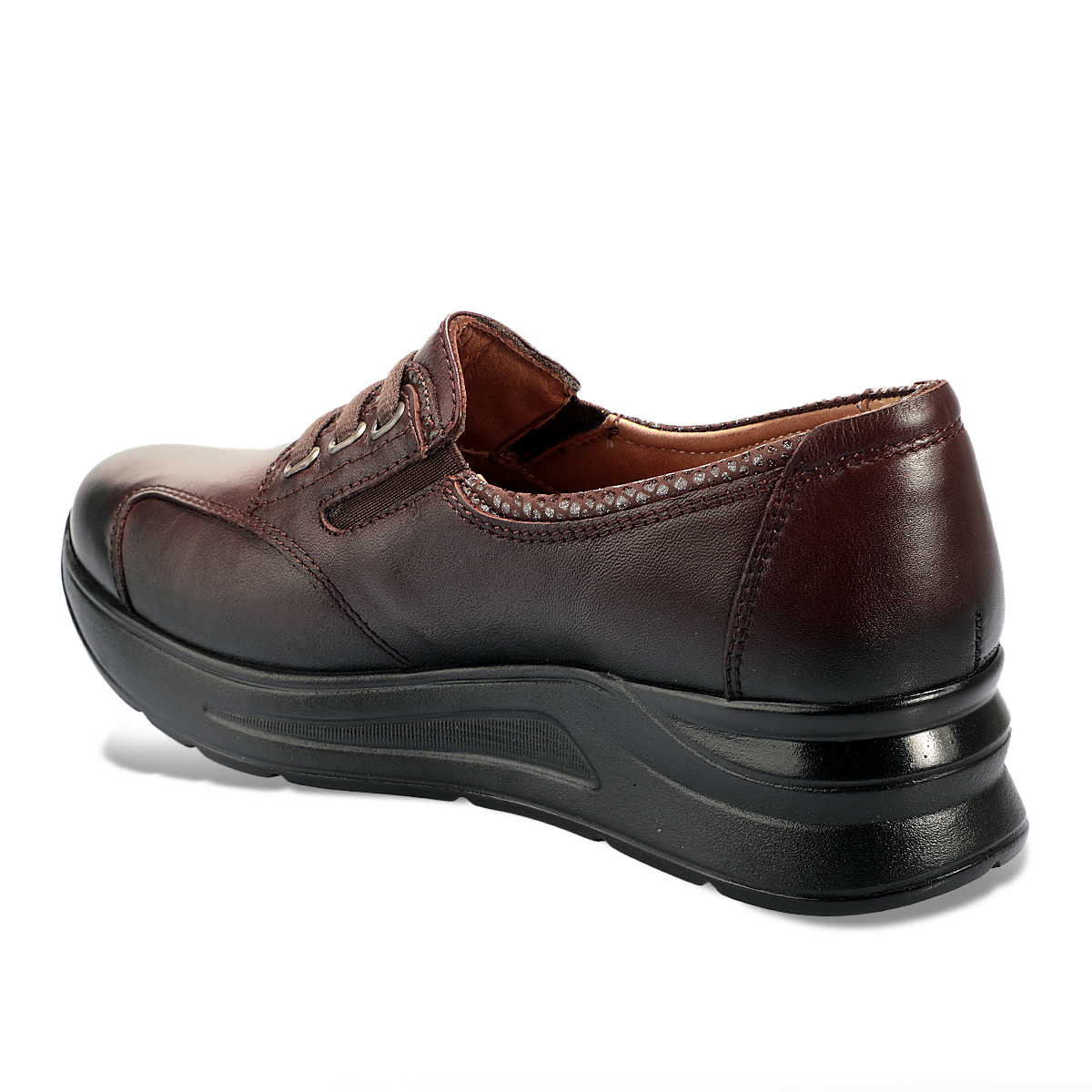 Poliüretan tabanı ve 4 cm dolgu topuk tasarımı, dengeli bir yürüyüş ve hafif yükselme sağlar. Bağcıklı detayı sayesinde ayağa tam oturur ve kişisel ayarlama imkanı sunar. G standart kalıbı ile çoğu ayağa uyumlu olup, 36’dan 41’e kadar beden seçenekleri mevcuttur.