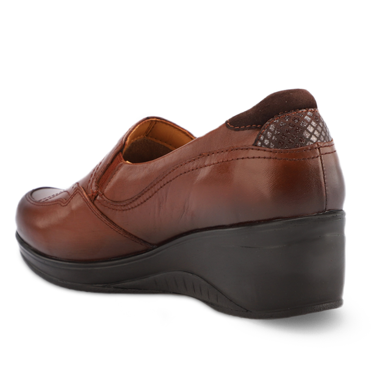Poliüretan taban ve 5 cm dolgu topuk tasarımı, yürüyüş sırasında dengeli bir basış ve hafif yükseklik sağlar. Bağcıksız tasarımı sayesinde ayakkabı kolayca giyilip çıkarılabilir, günlük rutinlerde pratik kullanım avantajı sunar. Standart kalıbı ile çoğu ayak tipine uyumlu olup, 36’dan 41’e kadar beden seçenekleri mevcuttur.