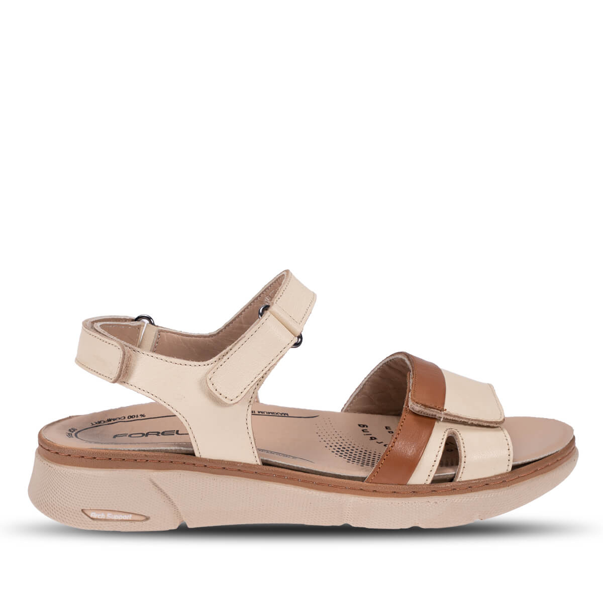 Deri kaplı poliüretan iç taban, ayağın şeklini alarak ekstra destek ve yumuşaklık sağlar. 3,4 cm düz topuk ve poliüretan taban, hafiflik ve dayanıklılığı bir arada sunar.